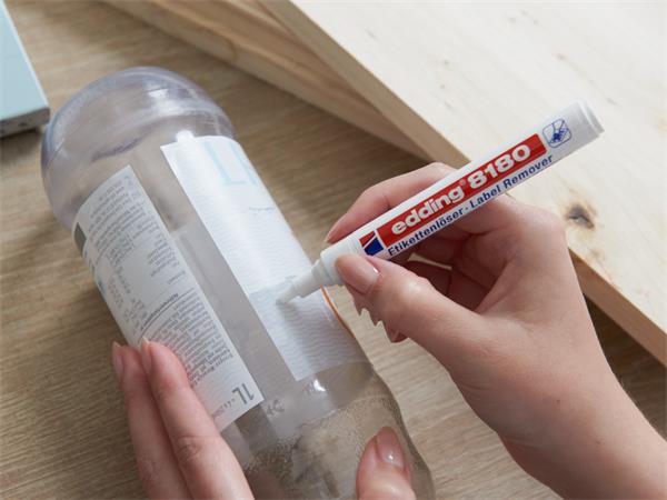 -Hagyja néhány percig hatni, majd egyszerűen távolítsa el a címkét és a ragasztómaradványokat.