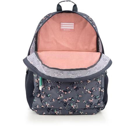 Hátizsák, iskolatáska, cipzáras, GABOL "Secret", szürke, virágmintás
